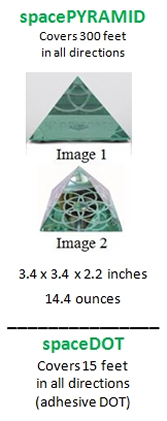 (949) 551-3397This stunning glass pyramid, modeled on the precise dimensions of the Great Pyramid is both beautiful and transformative. Two programmed Space DOTs are crafted into the heart of the pyramid powers its ability to re-energize your home or work spaces. The dimensions of the pyramid and the Seed of Life geometries engraved on the base create a powerful resonant field to transform geopathic, architectural, historical and emotional environmental imbalances up to an approximate radius of 90 meters / 300 feet.